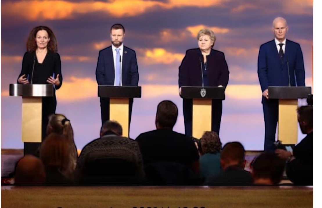 Scenen som utspant seg foran meg var som tatt ut av en dårlig regissert dokumentar. Der sto de — Guldvog, Solberg, Høie, Stoltenberg — med presist målte meter mellom seg. Stive i skuldrene, alvorstunge. De hadde antagelig øvd masse. Gått igjennom hele scenen på bakrommet.