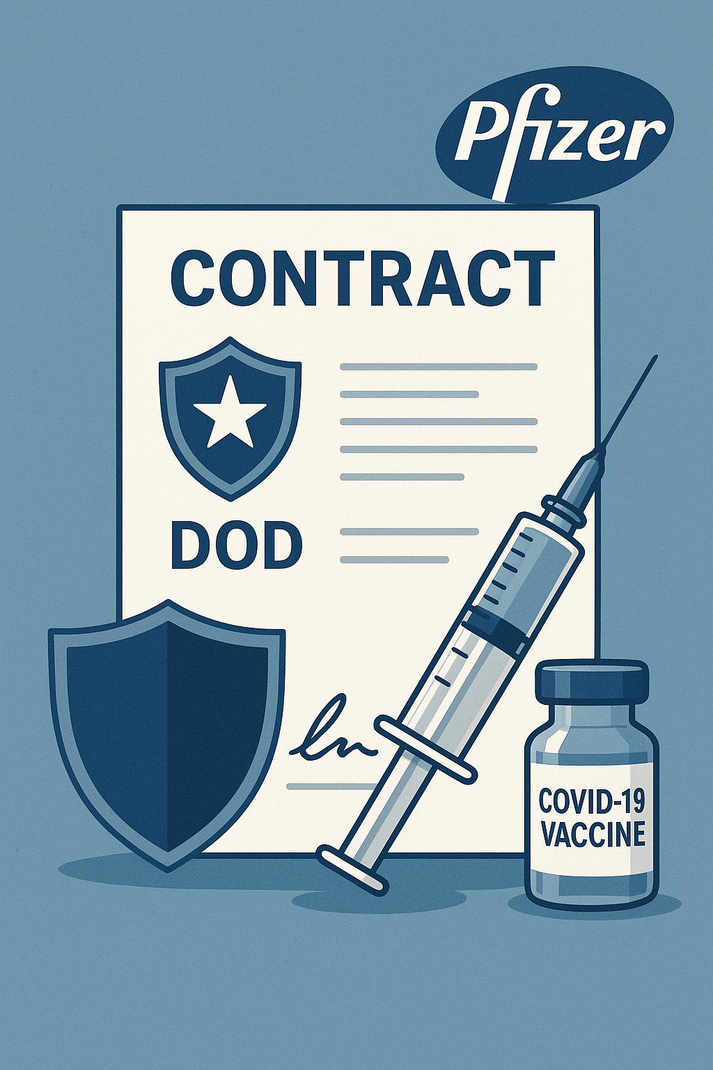 DODs/Pfizers vaksineutviklingskontrakt 3 uker senere 21/7 2020 unntok vaksinen fra alle krav i legemiddellovgivningen ved å lage en OTA (Other transaction authority) «prototype&demonstrasjonskontrakt».