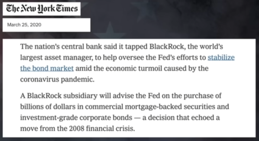 Jeg skal heller helt kort gi noen eksempler på praktiske utslag av ren politisk makt tilknyttet Blackrock og dets CEO Larry Fink. For eks. kom The Federal Reserve (USA’s «sentralbank») med en henvendelse til Blackrock og Fink i finanskrisen i 2008-2009 hvor Blackrock ble spurt om å faktisk håndtere krisen på vegne av amerikanske myndigheter. Dette er ikke småtterier, og et sterkt tegn på enorm innflytelse og makt, rent praktisk og politisk, selv om det kan være uformelt betinget.