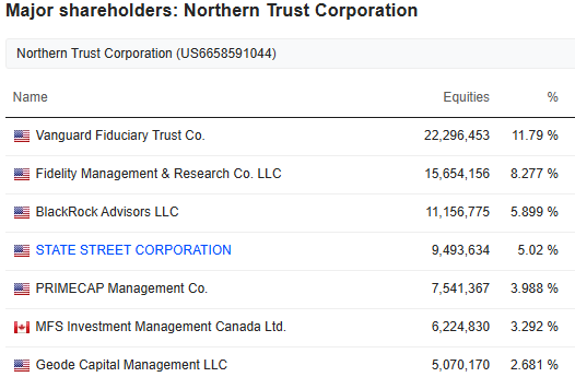 Lenger ned på listen over andelseierne i Pfizer kommer Northern Trust Corp, og andelseierne hos dem er: