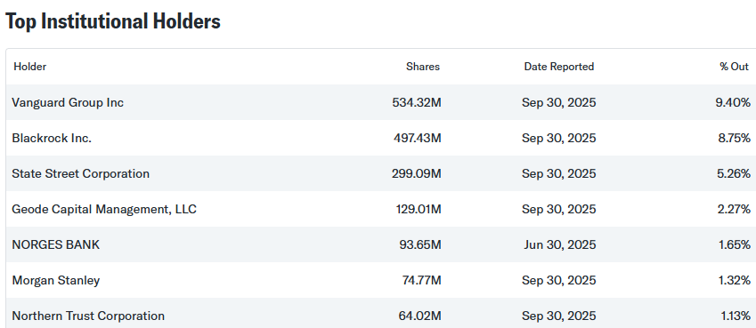 Så tilbake til Pfizer; Blackrock er på andreplass over andelsholdere, bare rett bak Vanguard. «Kartellet» har alle tre øverste plasser, og det som følger lenger ned er nærmest bare SIAB.