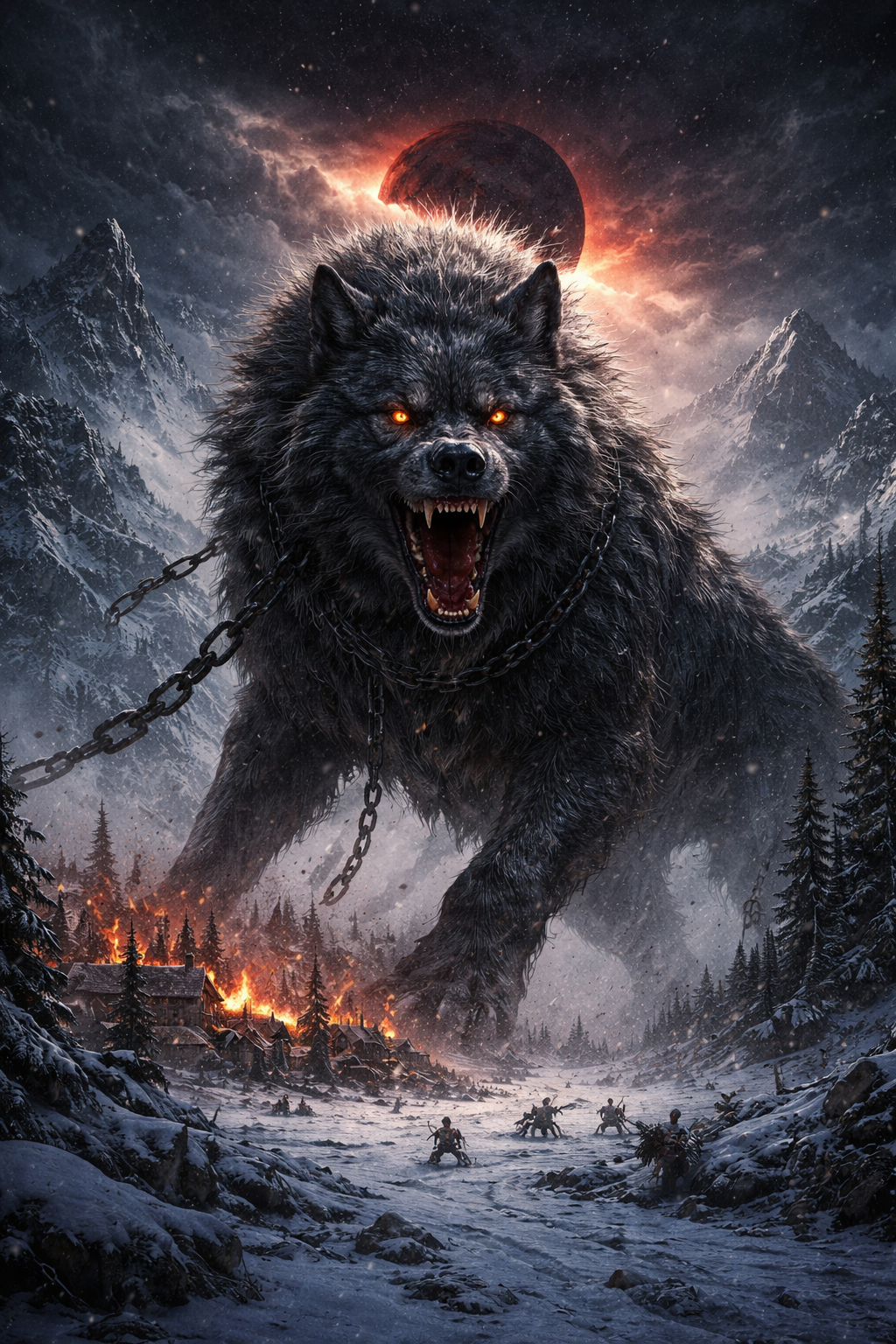 Når fimbulvinteren i mytene går mot sin ende, slukes solen og månen. Stjernene faller fra himmelen. Det som tidligere ga retning og rytme, forsvinner. I noen versjoner er det ulvene Skoll og Hate som jager og sluker lyset. I andre er det Fenrisulven som river solen ned.